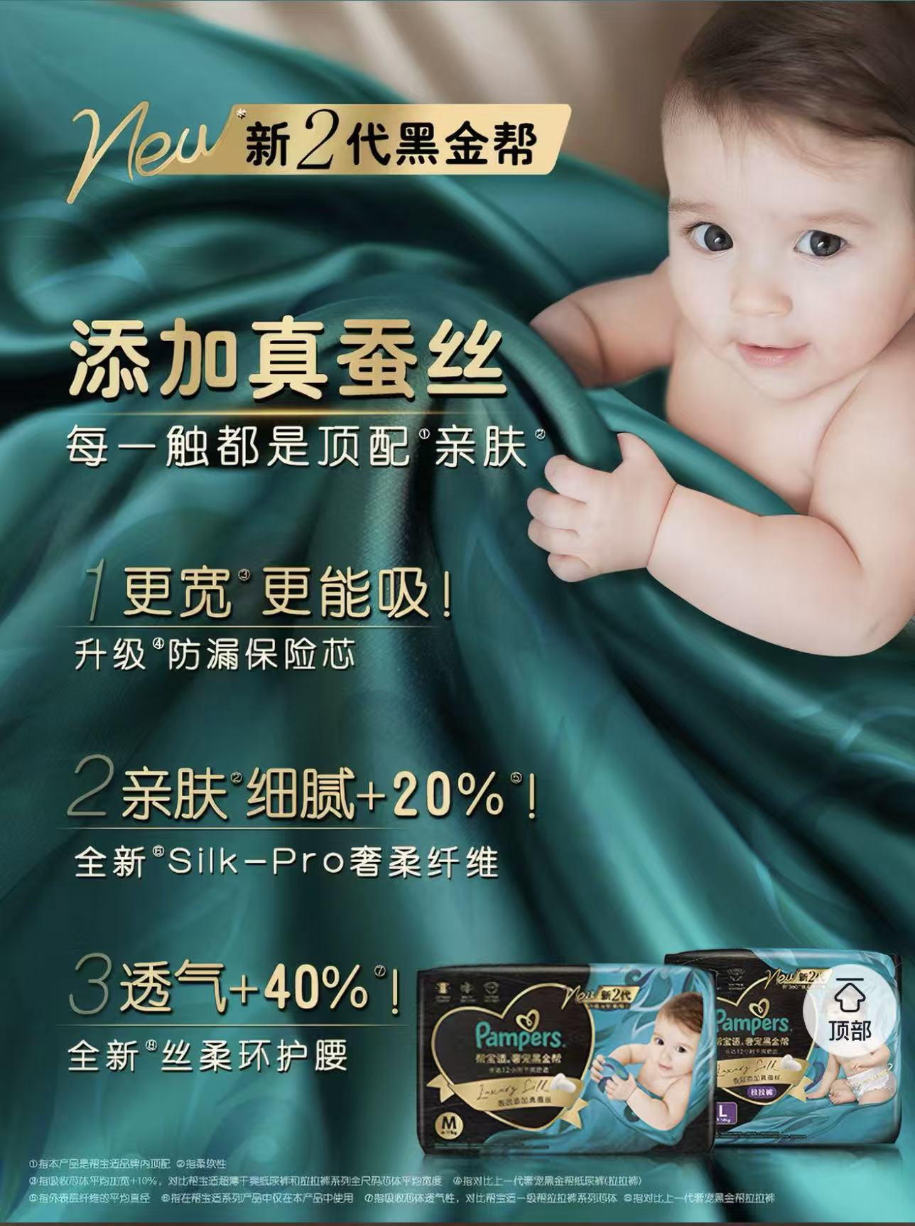 Hinter dieser Einführung steht ein sehr bewusster Schritt von Procter & Gamble: Angesichts sinkender Geburtenraten verlagert sich der Schwerpunkt von Volumen auf Premiumisierung. In China stellte Pampers folglich seine „Luxury Silk“-Linie vor – mit einem ikonischen Material, das seit Tausenden von Jahren Eleganz und Status symbolisiert.