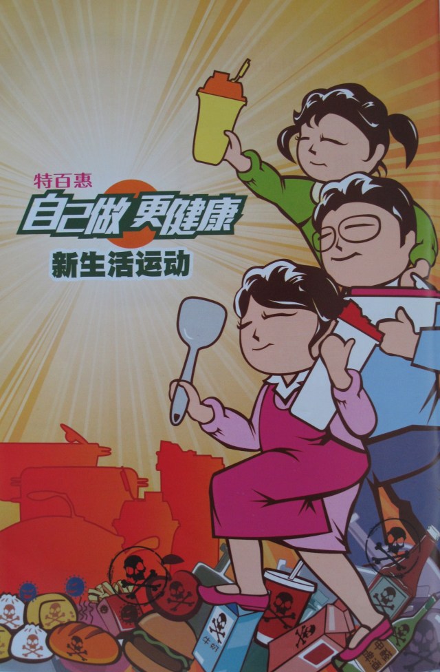 Eine neuzeitliche Werbemaßnahme, die Erinnerungen an kommunistische Propagandaposter weckt? Der amerikanische Konzern Tupperware macht es vor. In revolutionärer Pose strebt eine chinesische Ein-Kind-Familie der Sonne einer gesünderen Zukunft entgegen. Vorbei die Zeiten ungesunder Lebensmittel und noch ungesünderer Verpackungen.