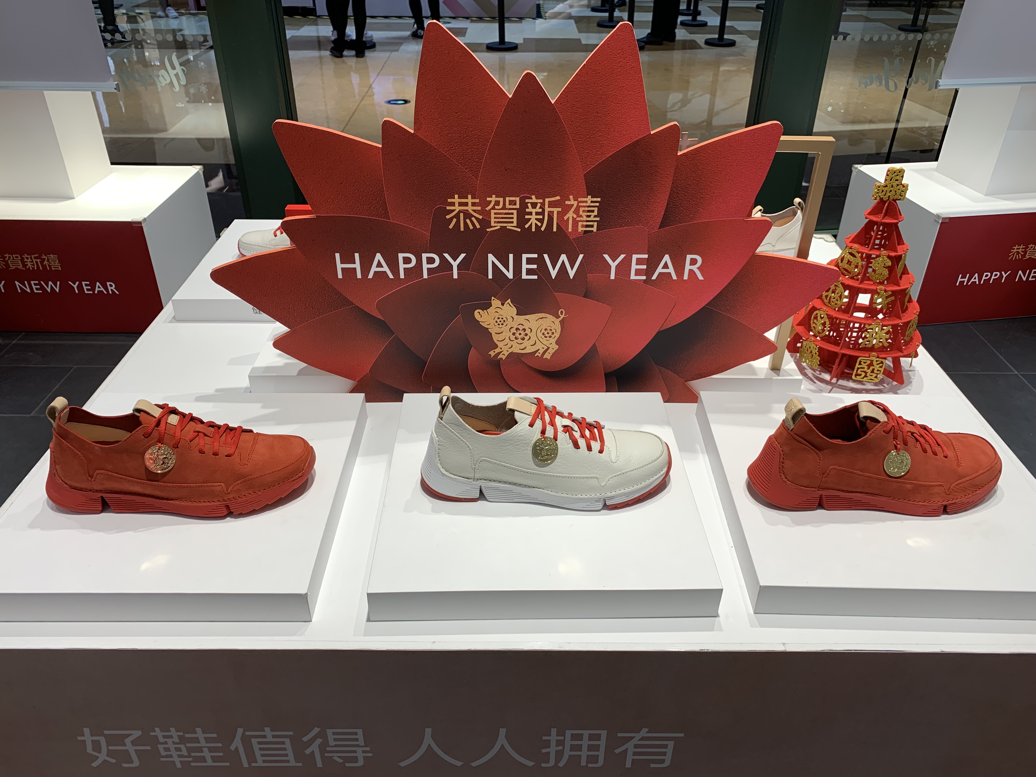 Goldene Schweinemünze an Frühlingsfestschuhen