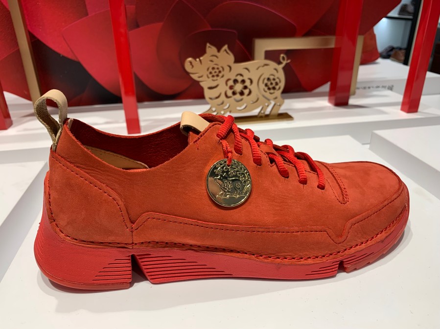 Goldene Schweinemünze an Frühlingsfestschuhen