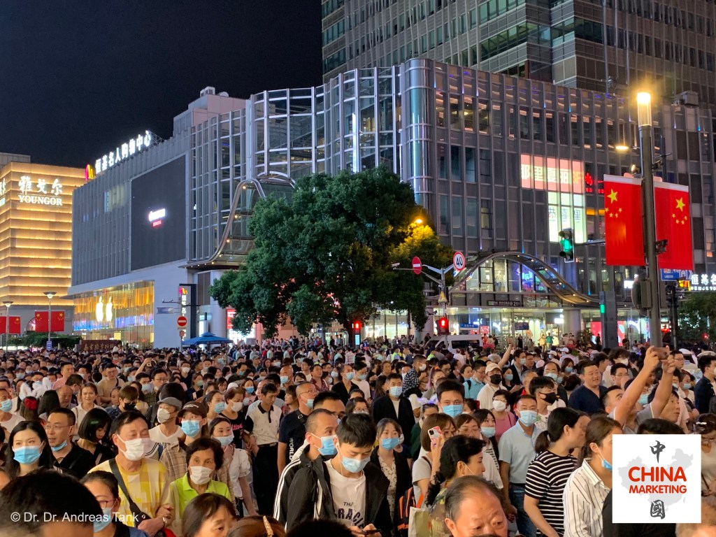 Menschenmassen auf der Shanghaier Nanjing Straße im Oktober 2020