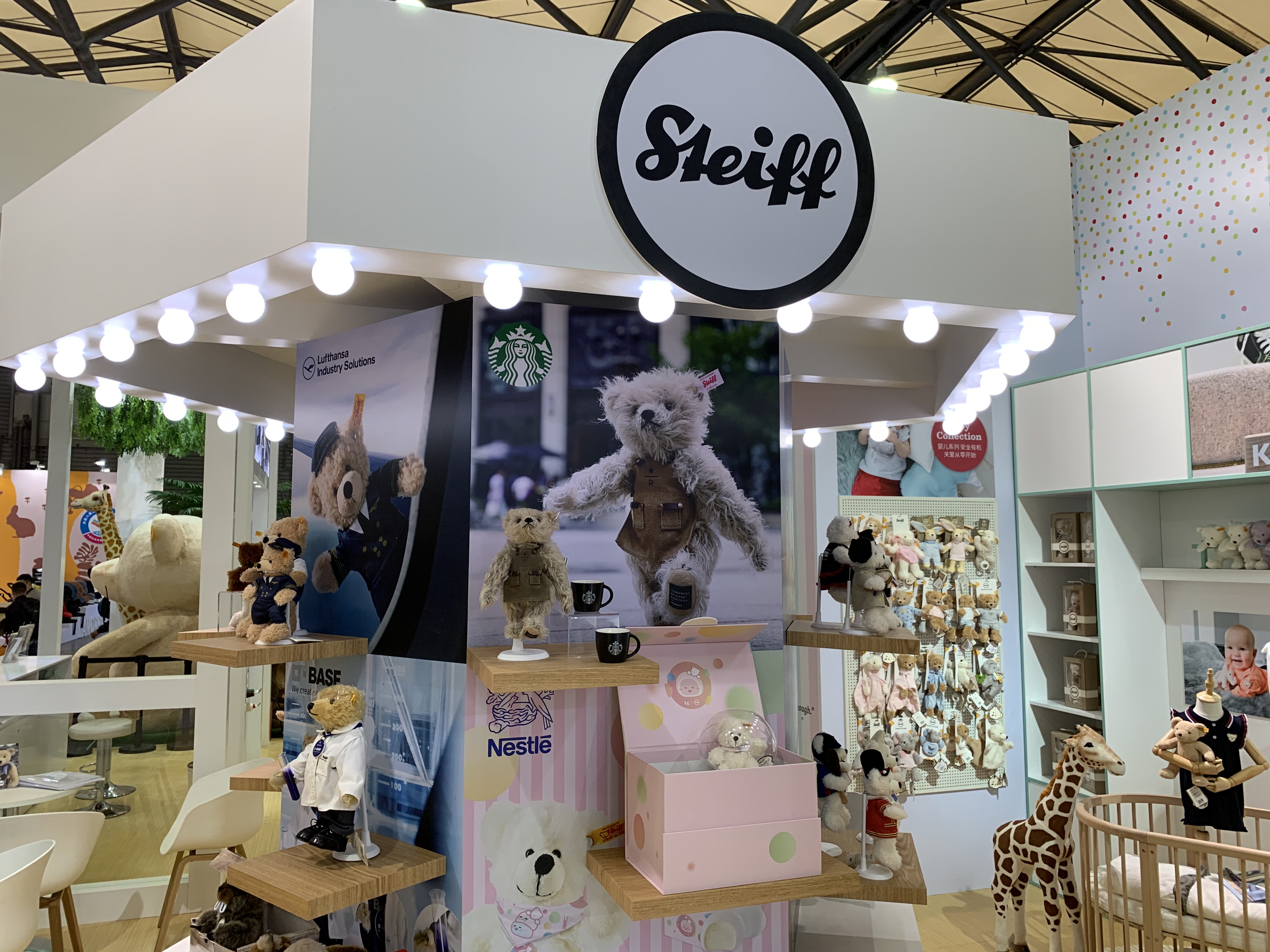 Wenn der Newcomer allen die Show stiehlt… Zum ersten Mal hatte Steiff einen Messestand auf der China Toy Expo und wurde sogleich zum Besuchermagnet. Unzählige Fachbesucher aus ganz China kamen an den attraktiven Stand und zeigten ihr großes Interesse an der 140 Jahre alten deutschen Traditionsmarke. Die meterhohen Studiotiere dienten als perfekter Selfie-Hintergrund – kaum einer, der ohne Foto an diesen vorbeilief. Ohne Zweifel wird der chinesische Markt einen wesentlichen Beitrag zur zukünftigen Erfolgsgeschichte leisten. Erwähnenswert ist ebenso das COVID-19-Management der Messeveranstalter: Gesundheits-QR-Code und Temperaturmessungen, zusätzliches Personal, das die Besucher daran erinnerte, während ihres Aufenthalts Masken zu tragen, und keine temporären Teppiche zwischen den Ständen. Aufgrund der aktuellen Umstände fraglos weniger bzw. fehlende internationale Besucher, aber insgesamt eine erfolgreiche Messe! at