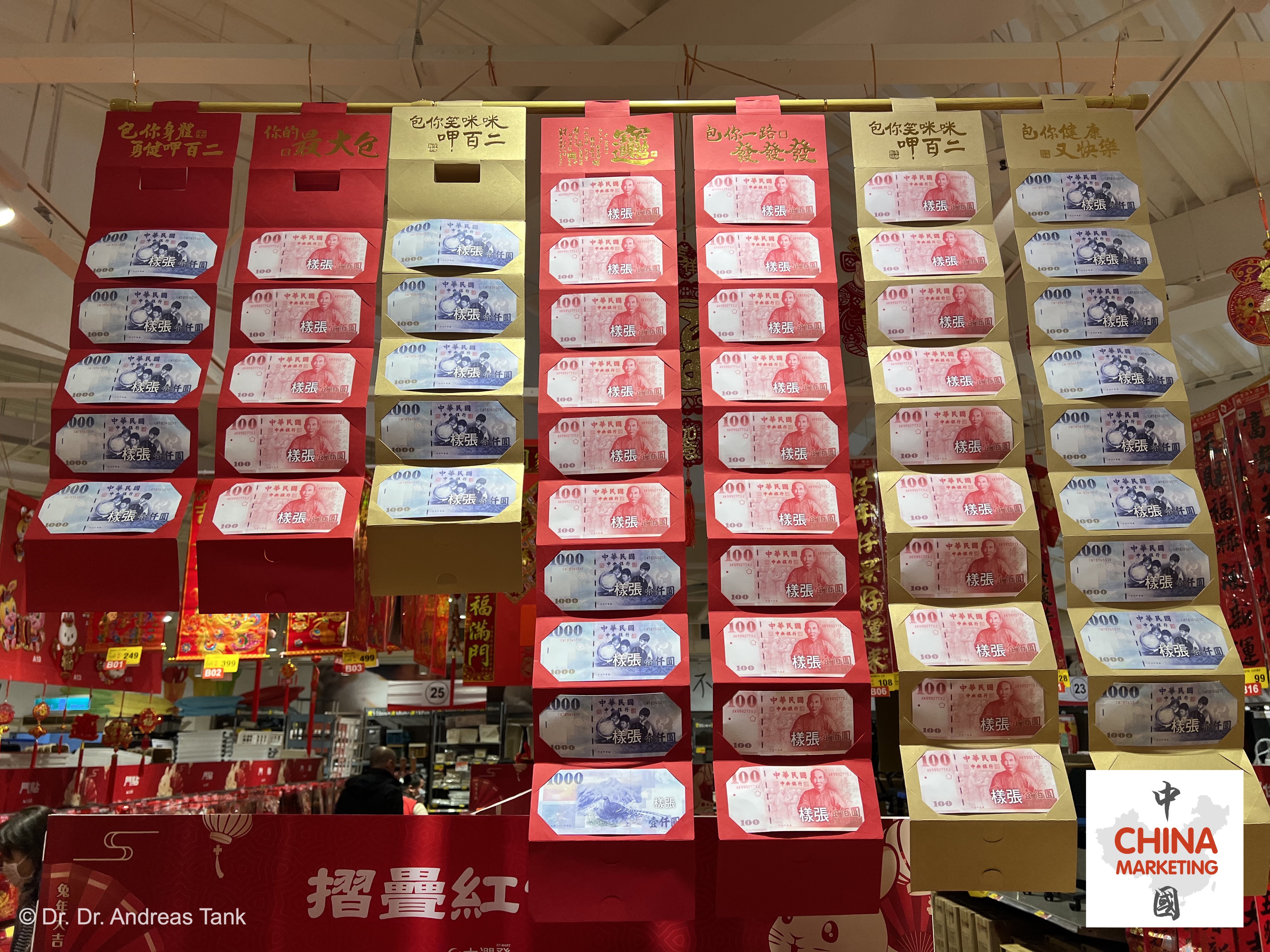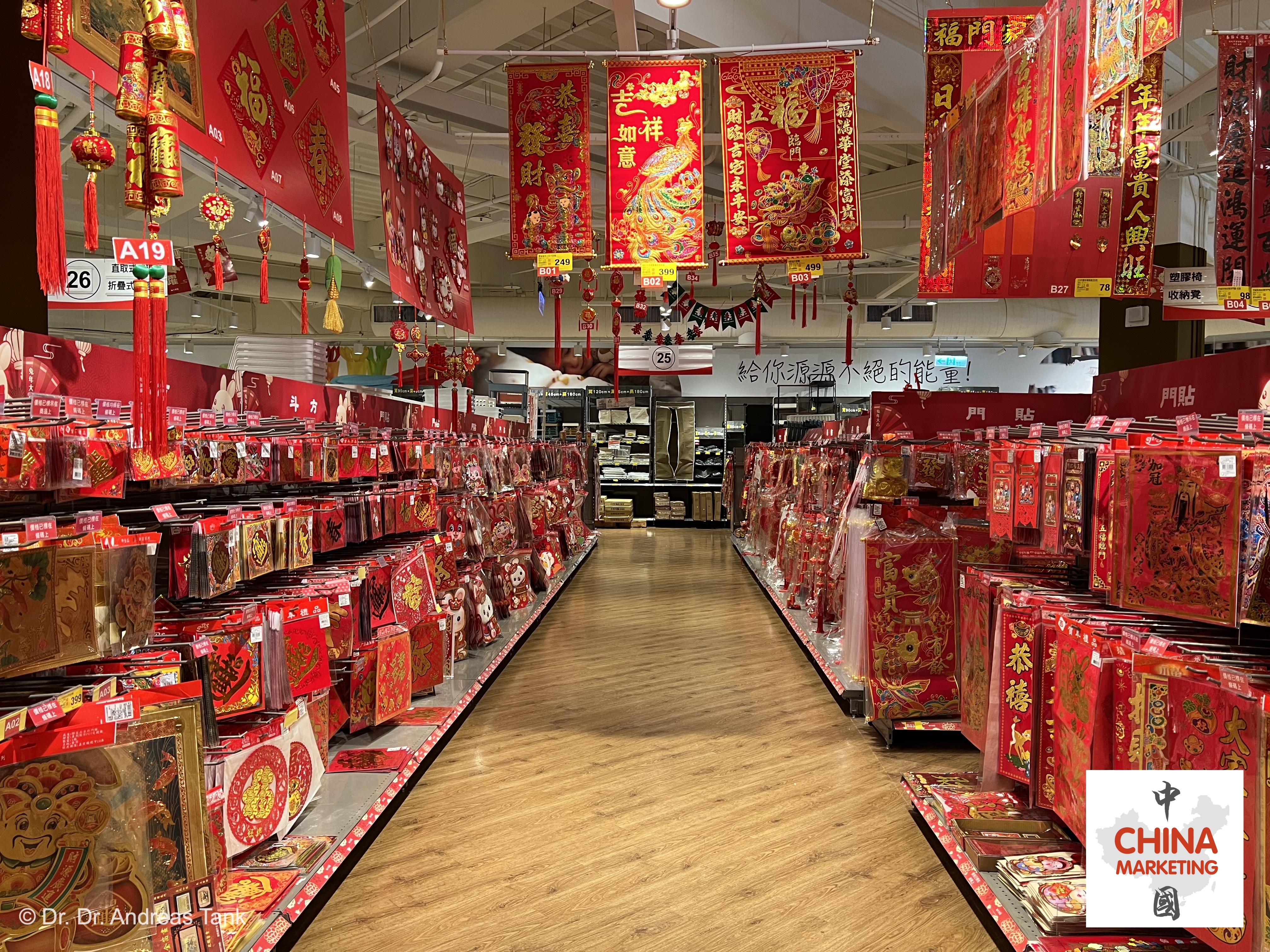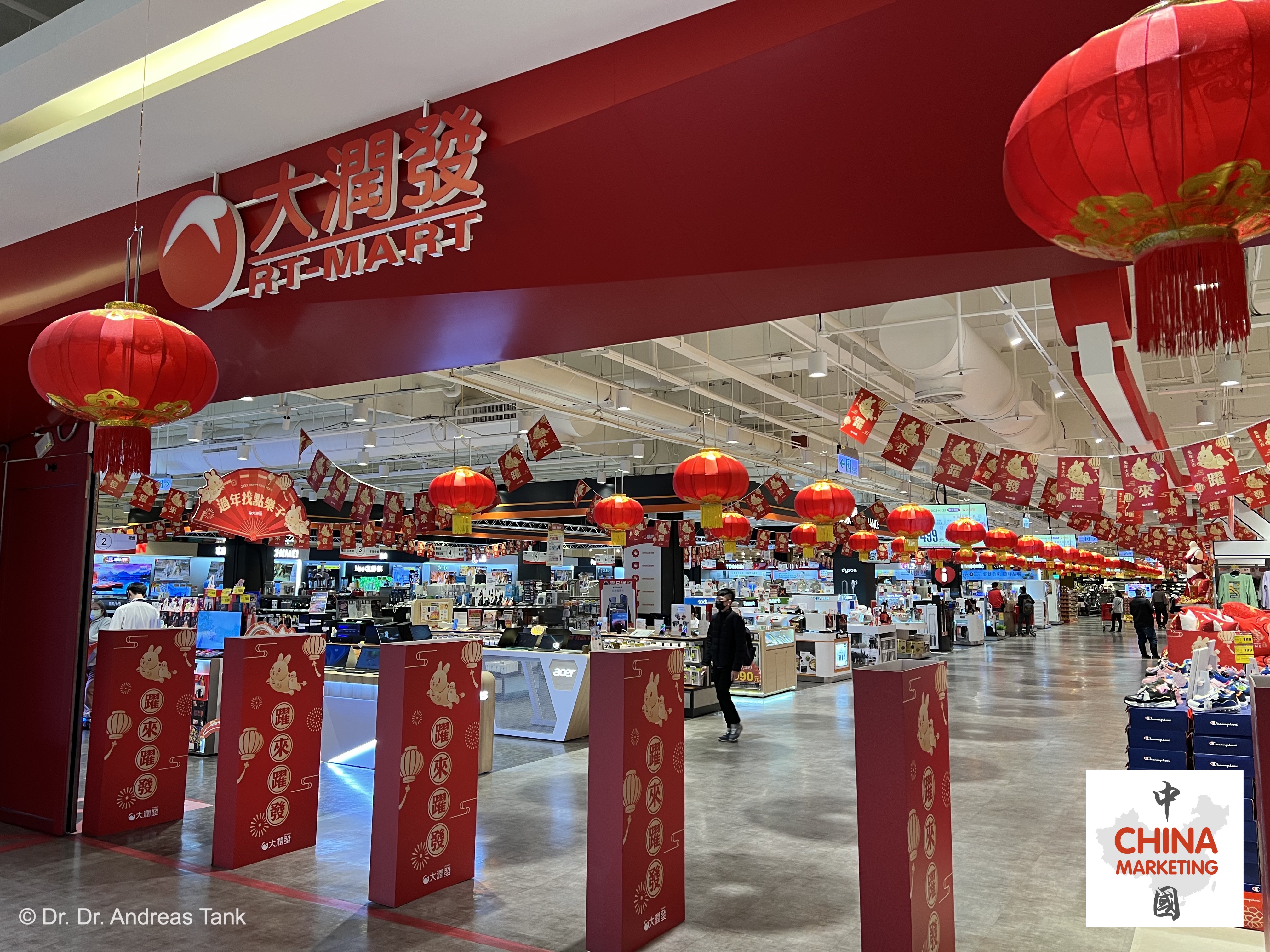 Die Wochen vor dem chinesischen Neujahrsfest gehören zu den spannendsten, um Supermärkte und Einkaufsmalls zu besuchen. Eine Fülle glückbringender Festdekoration, fröhliche Musik, saisonale Produkte, rote Unterwäsche, rote Umschläge für Geldgeschenke… Willkommen bei einem Besuch eines RT-MART in Taipeh! at