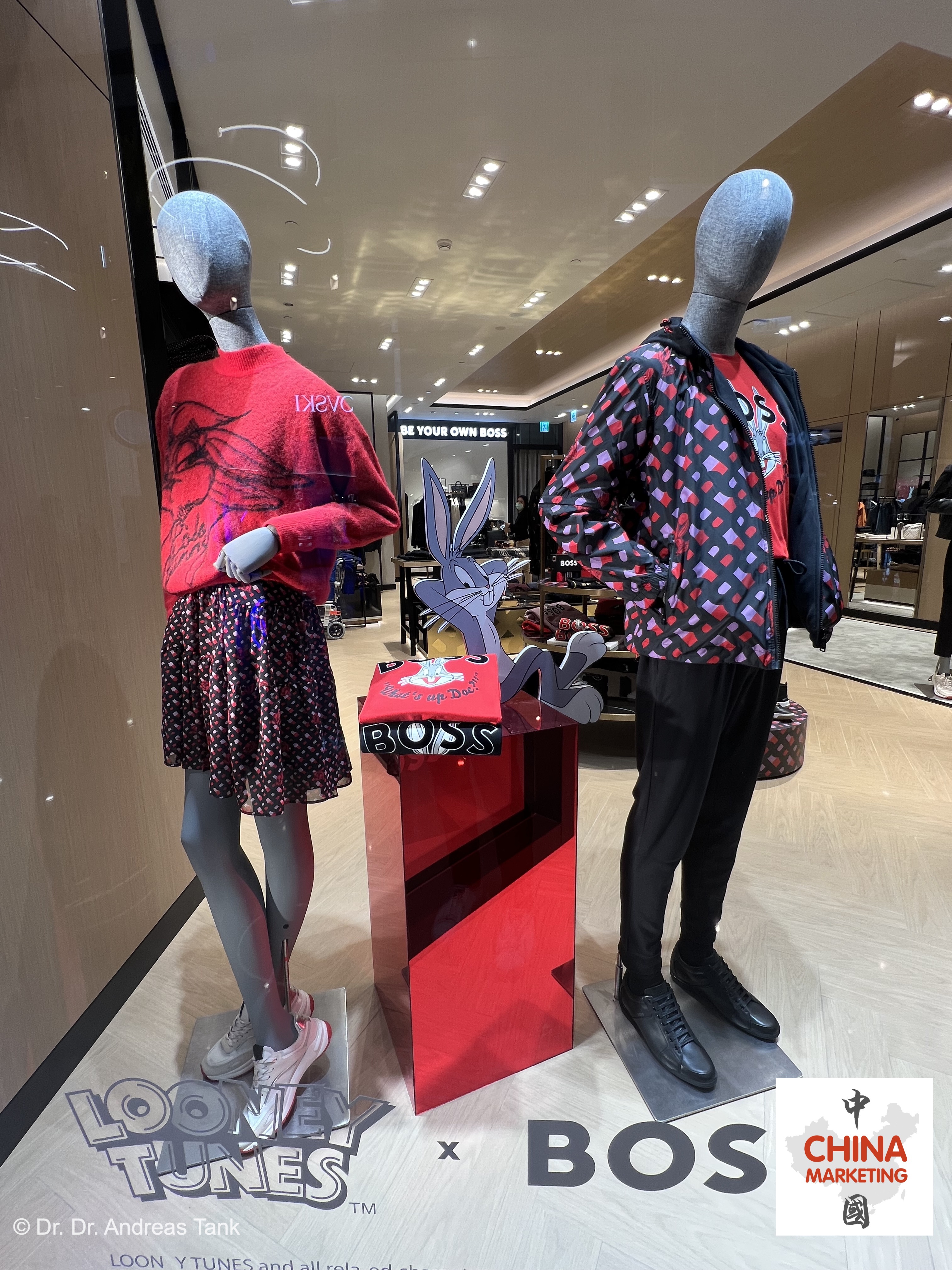 Looney Tunes und Miffy gehören zu den beliebtesten Lizenzen im Jahr des Hasen. Ein großer roter Bugs Bunny schmückt das Schaufenster des Flaggschiffgeschäfts von Scotch & Soda im Shanghaier Einkaufsviertel Xintiandi. Hugo Boss setzt für seine Herren- und Damenbekleidung auf Bugs Bunny und Lola Bunny. Auch Uniqlo kooperiert mit Warner Brothers. Tommy Hilfiger hingegen hat ein umfassendes Bekleidungssortiment mit Miffy entworfen. Diese beliebte Zeichentrickfigur ist auch das Kernmerkmal der adidas „Rabbit To Go“-Kollektion. at