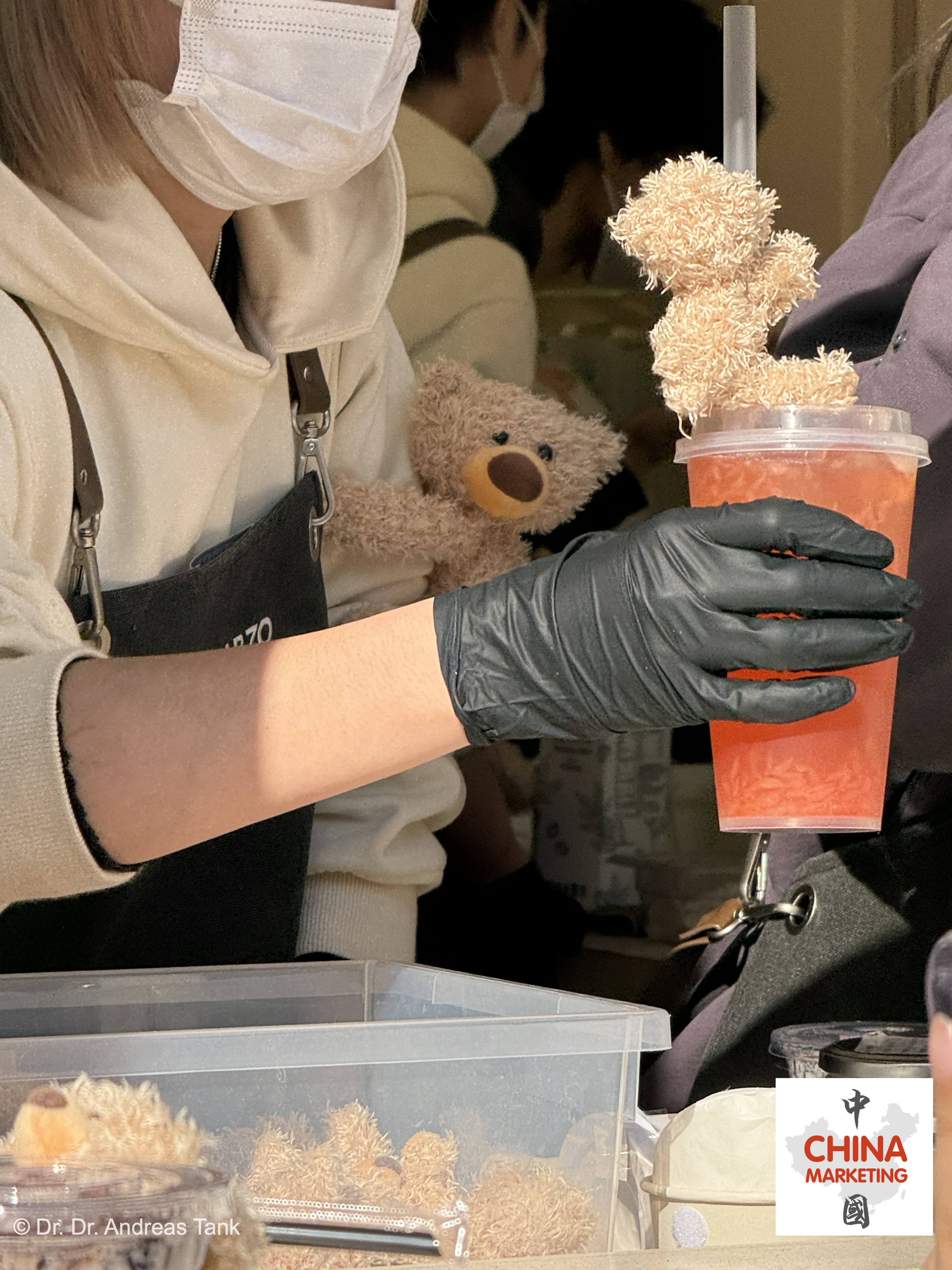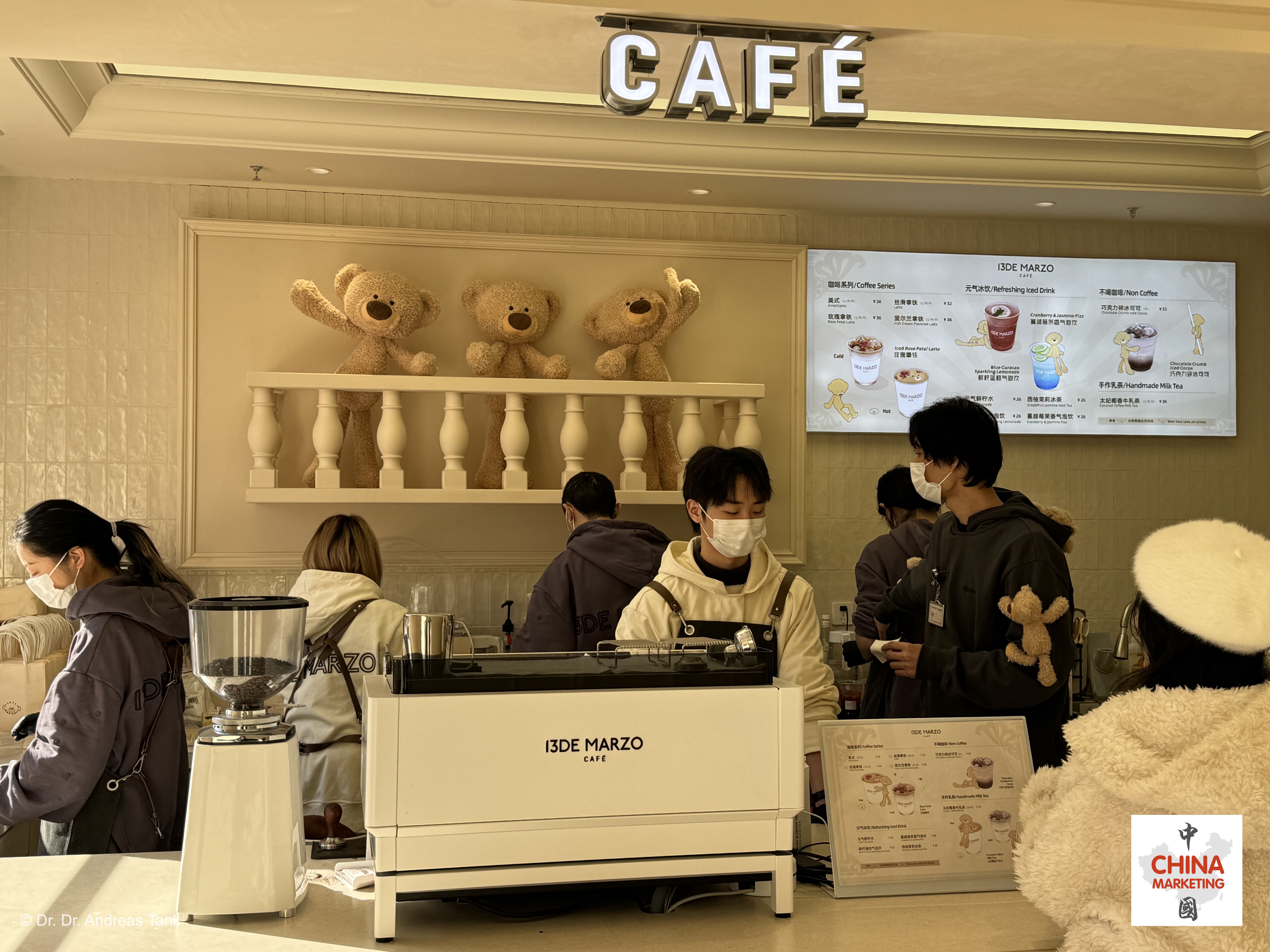 Shanghais pulsierende Anfu Straße hat eine neue Attraktion. Die chinesische Modemarke 13DE MARZO hat ein Café eröffnet, und wie erwartet sind die Warteschlangen lang… Die Marke ist für ihren unverwechselbaren Stil bekannt, der abnehmbare Plüschtiere wie Bären und Hasen in ihre Kleidung integriert. 13DE MARZO hat auch einige ikonische Markenkooperationen durchgeführt, beispielsweise mit NASA, Coca-Cola, der Sesamstraße und UGG. Was könnte besser für soziale Medien geeignet sein… Für einen besonders auffälligen Tweet empfiehlt sich zusätzlich der Milchschaum mit einem Bärengesicht! at