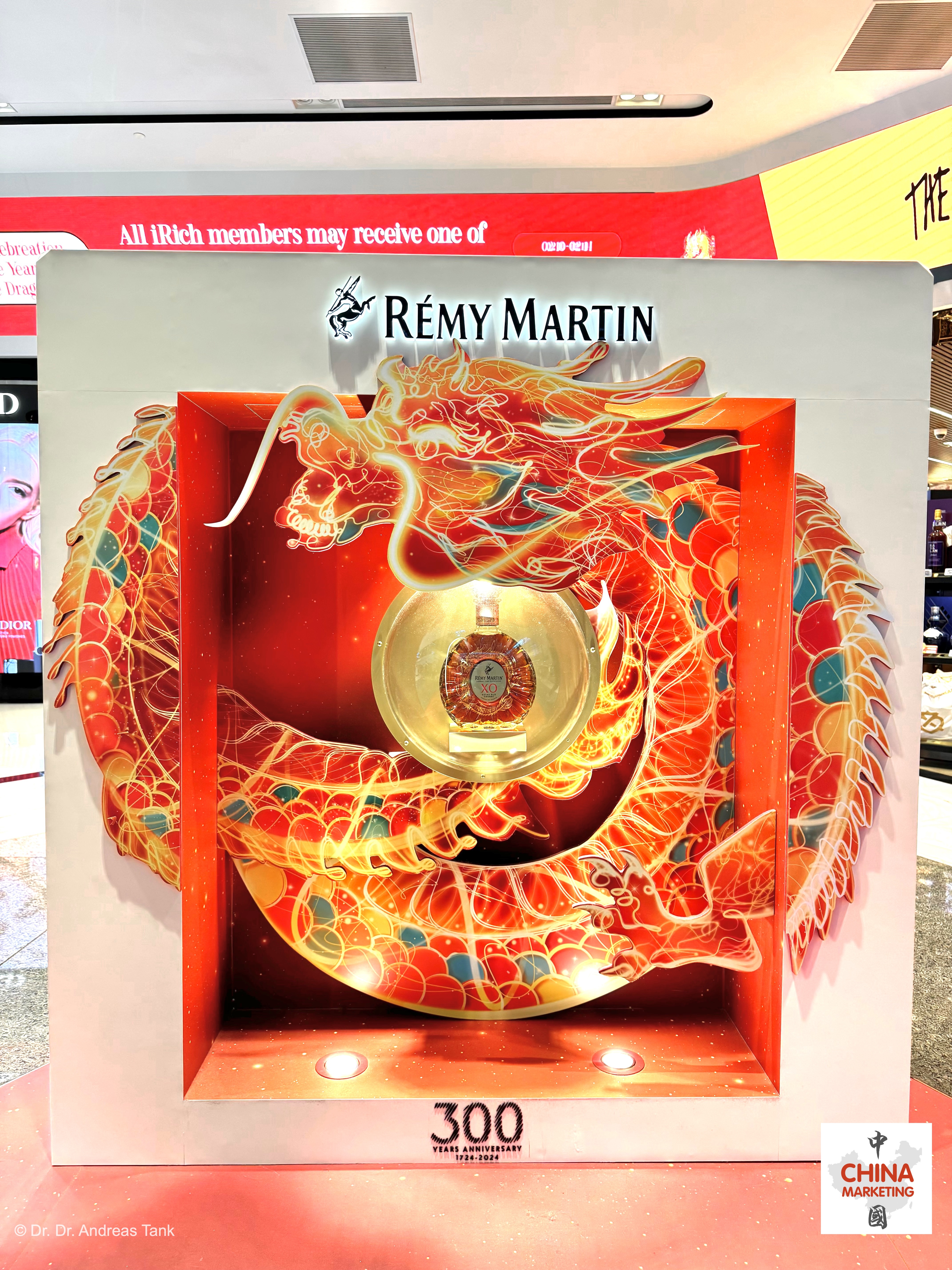 Im Jahr 2024 feiert die Cognac-Marke Rémy Martin ihr 300-jähriges Jubiläum. Rémy Martin wurde 1724 im Zeichen des Drachen geboren und hat folglich zum chinesischen Frühlingsfest eine limitierte Drachenjahrkollektion auf den Markt gebracht. Während sich der Gründer, Rémy Martin, wahrscheinlich nicht darüber im Klaren war, dass er sein Haus in einem so glückverheißenden Jahr gründete, ist die „Ehrung der Rückkehr des Drachen“ heute höchst sichtbar ein willkommenes Marketingelement, um diesen besonderen Anlass zu begehen.