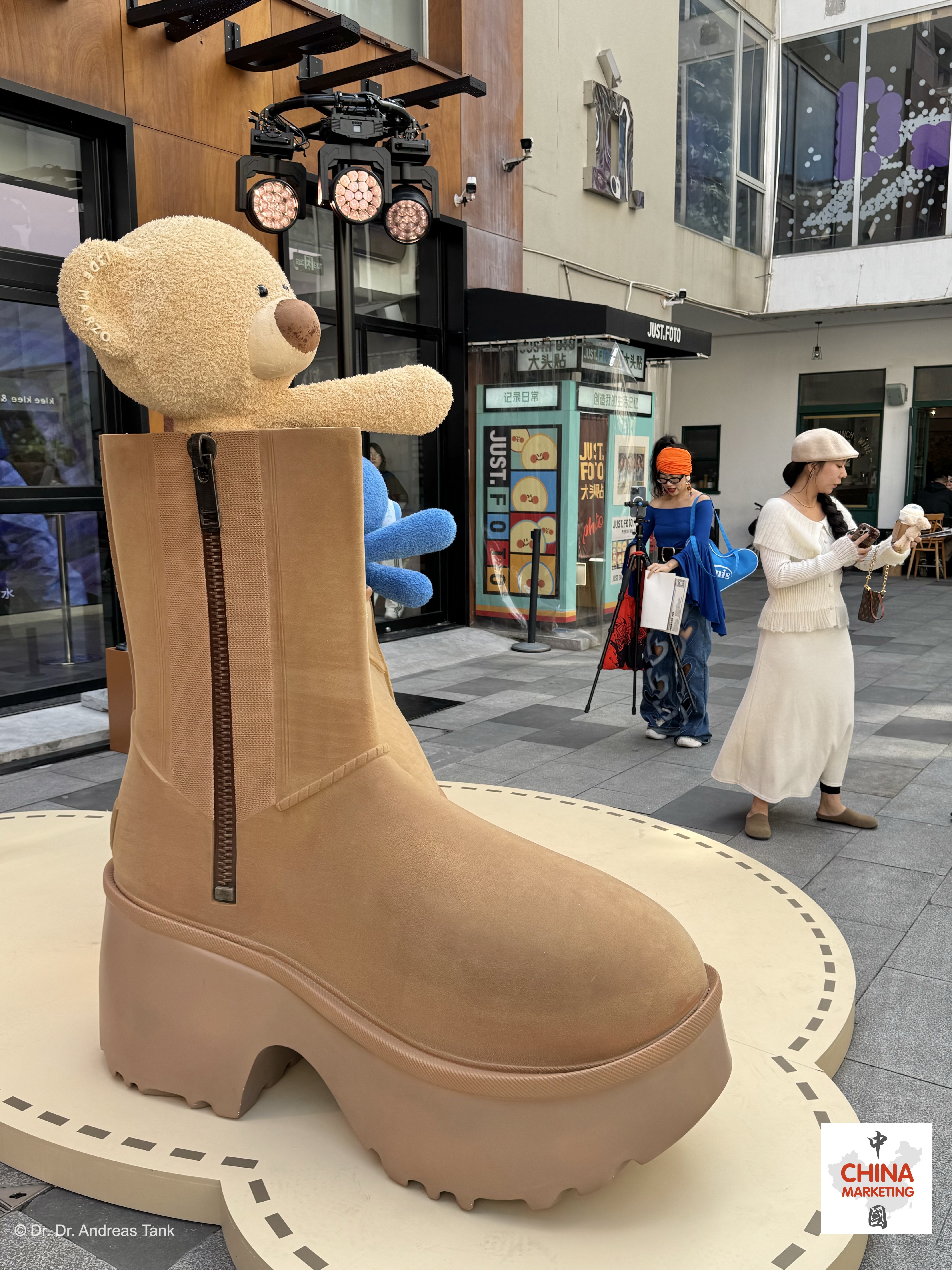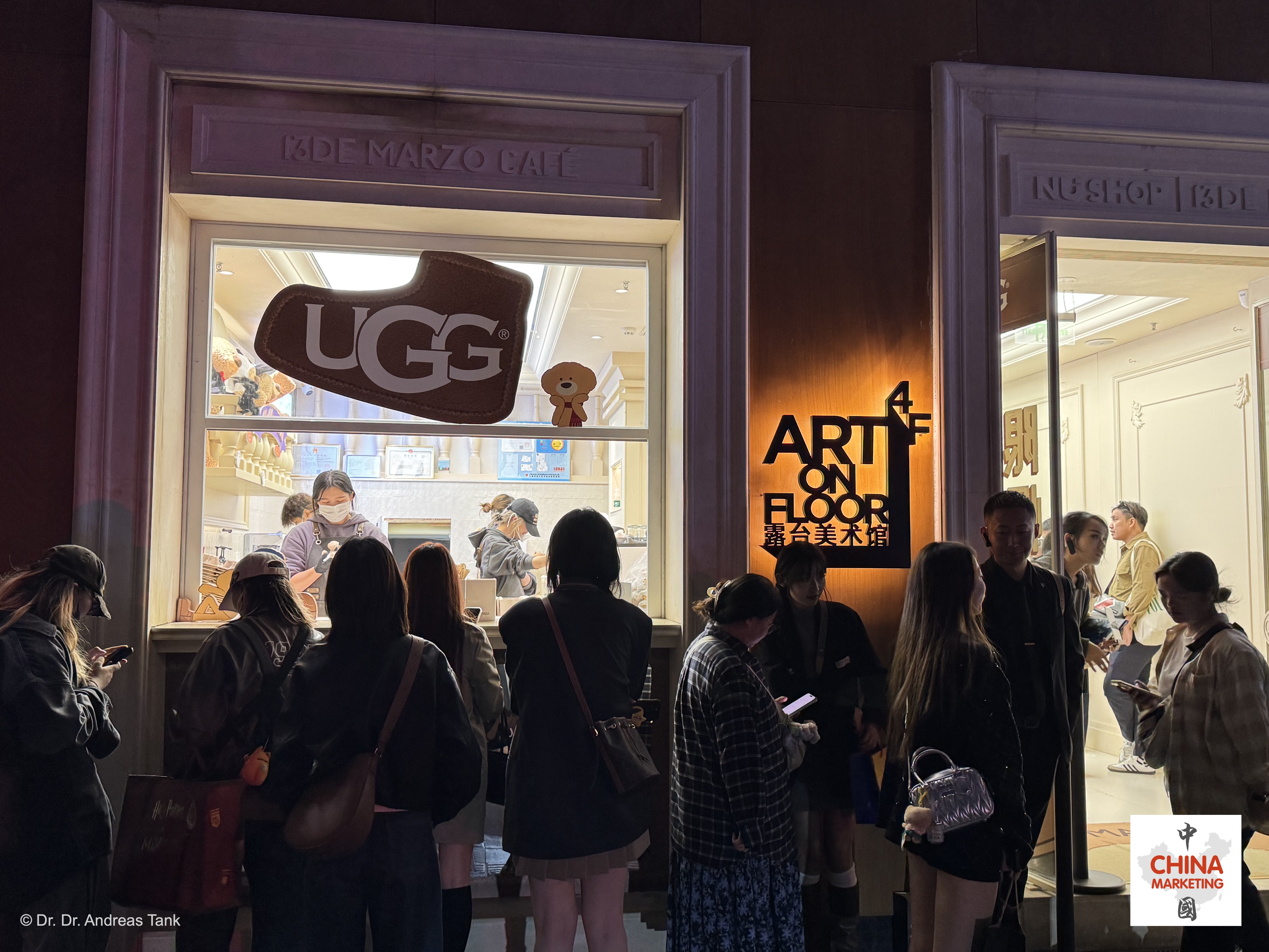 Der Winter naht – Zeit für ein Paar warme Schuhe! Wie wäre es mit Stiefeln von UGG? Das australische Modeunternehmen hat die lebhafte Anfu-Straße in Shanghai übernommen, um seine saisonale Kollektion auf den Markt zu bringen: Ein Paradies an Foto-Requisiten! UGG arbeitet mit zahlreichen Geschäften und Marken auf der Anfu-Straße zusammen, zum Beispiel 13DE MARZO – dessen Café hat seit seiner Eröffnung Anfang des Jahres ein großes Publikum angezogen. An jedem Kaffeebecher klebt ein kleiner Plüschteddy, der zu Halloween sogar ein Geisterkostüm trug. Zweifellos lieben die kuscheligen Bären auch die gemütlichen New-Heights- und Tasman-Weather-Hybrid-Schuhe von UGG. Tag und Nacht kommt eine große Anzahl von Menschen zusammen, die Fotos für ihre Social-Media-Kanäle machen. at