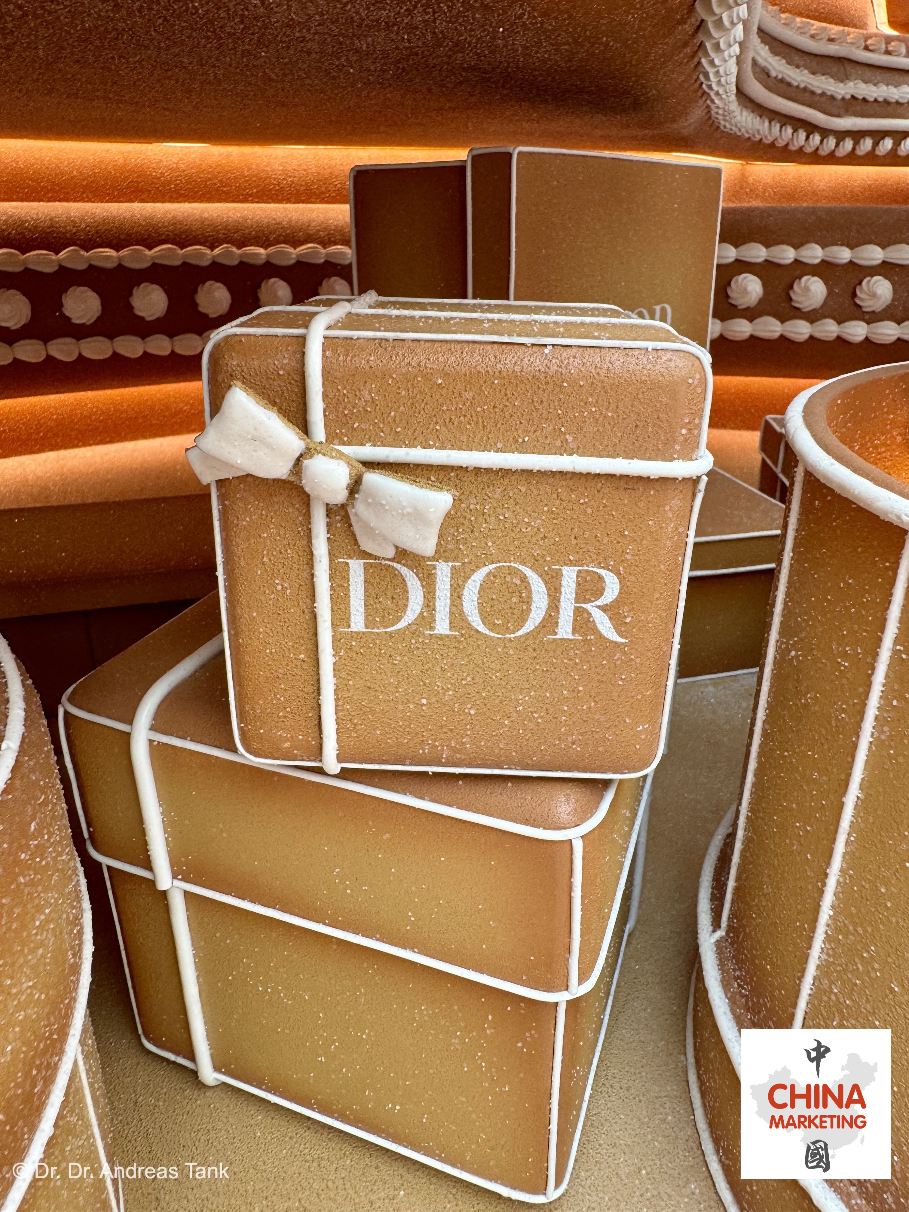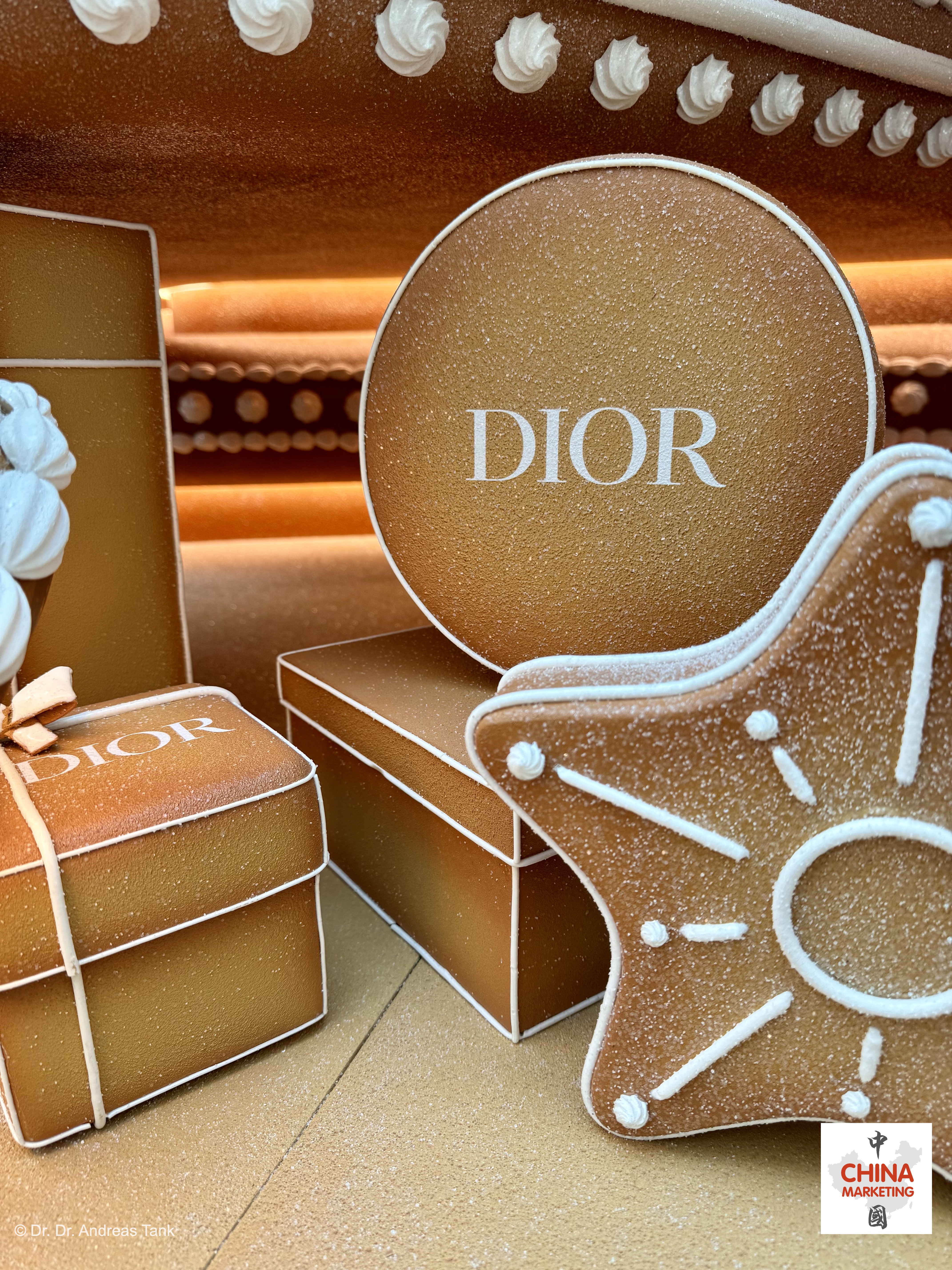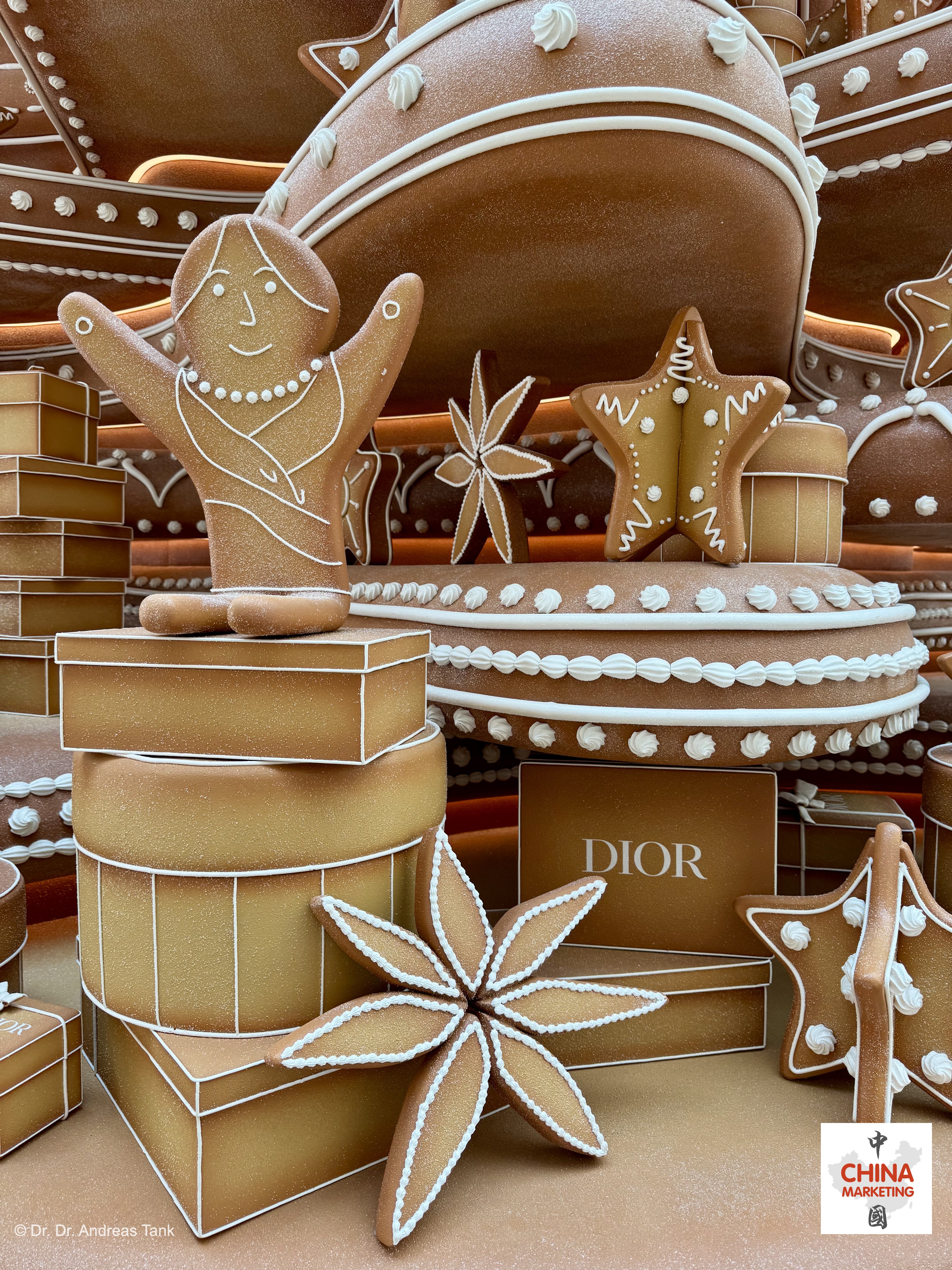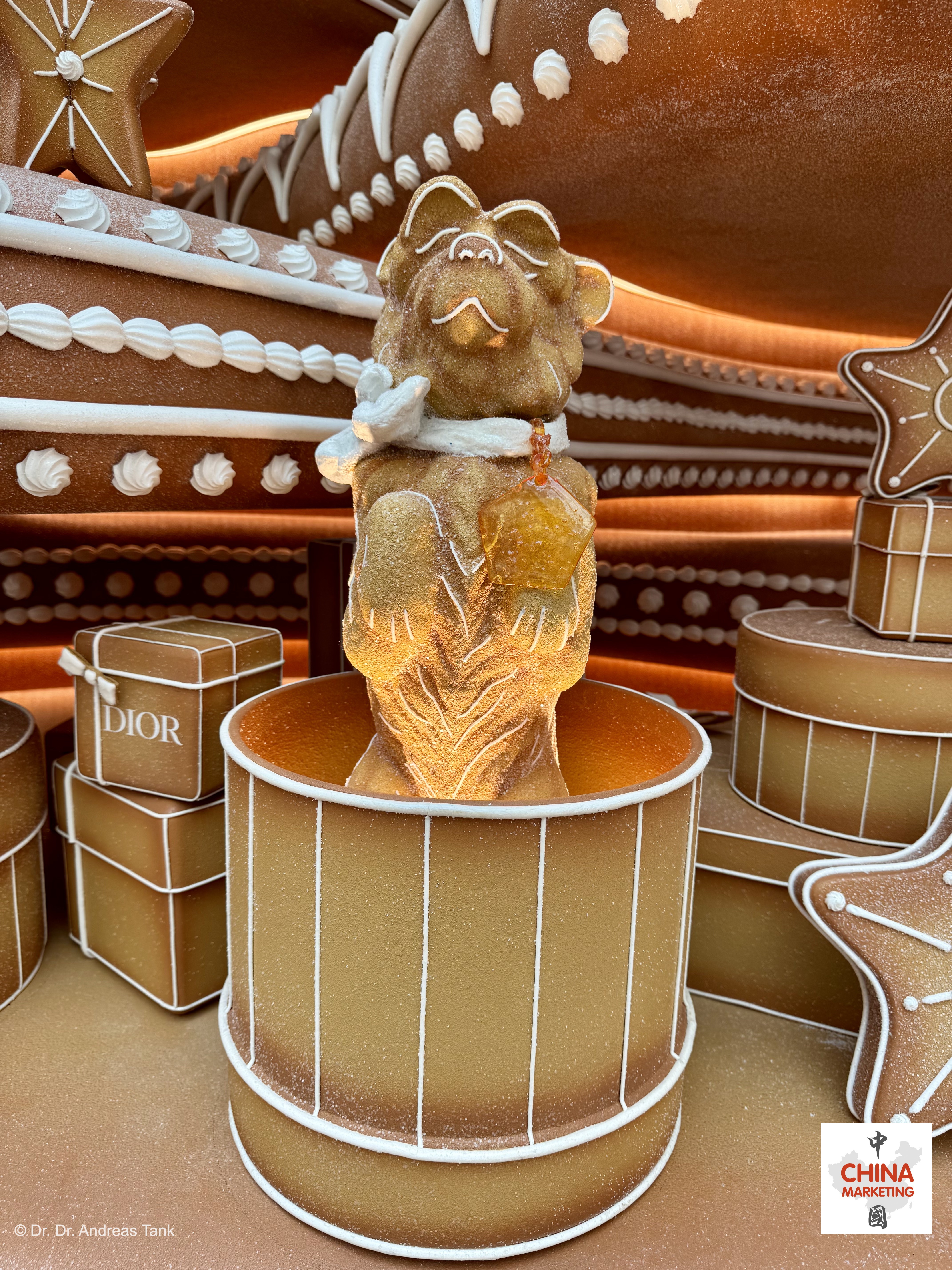 Einer der spektakulärsten Weihnachtsbäume in Shanghai steht dieses Jahr im Luxus-Einkaufszentrum Plaza 66. Die über 10 Meter hohe monumentale Kiefer wurde von Lebkuchenhäusern inspiriert. Sie ist mit einer „Christian Dior Around The World“-Schleife geschmückt und mit bezaubernden, sich drehenden Details verziert: klassische Dior-Designs wie das Junon-Kleid, das Tourbillon-Modell und der legendären Bar-Anzug. Aufmerksame Besucher entdecken auch Christian Diors Hund Bobby. Der Baum ist von Lebkuchenbänken umgeben und ein Lebkuchenmann macht Fotos mit einer Lebkuchenkamera. Für Dior, dessen Shanghaier Flaggschiffgeschäft sich in der Plaza 66 befindet, ist der bezaubernde Baum eine Hommage an Träume, die fabelhafte Momente voller Emotionen versprechen. at