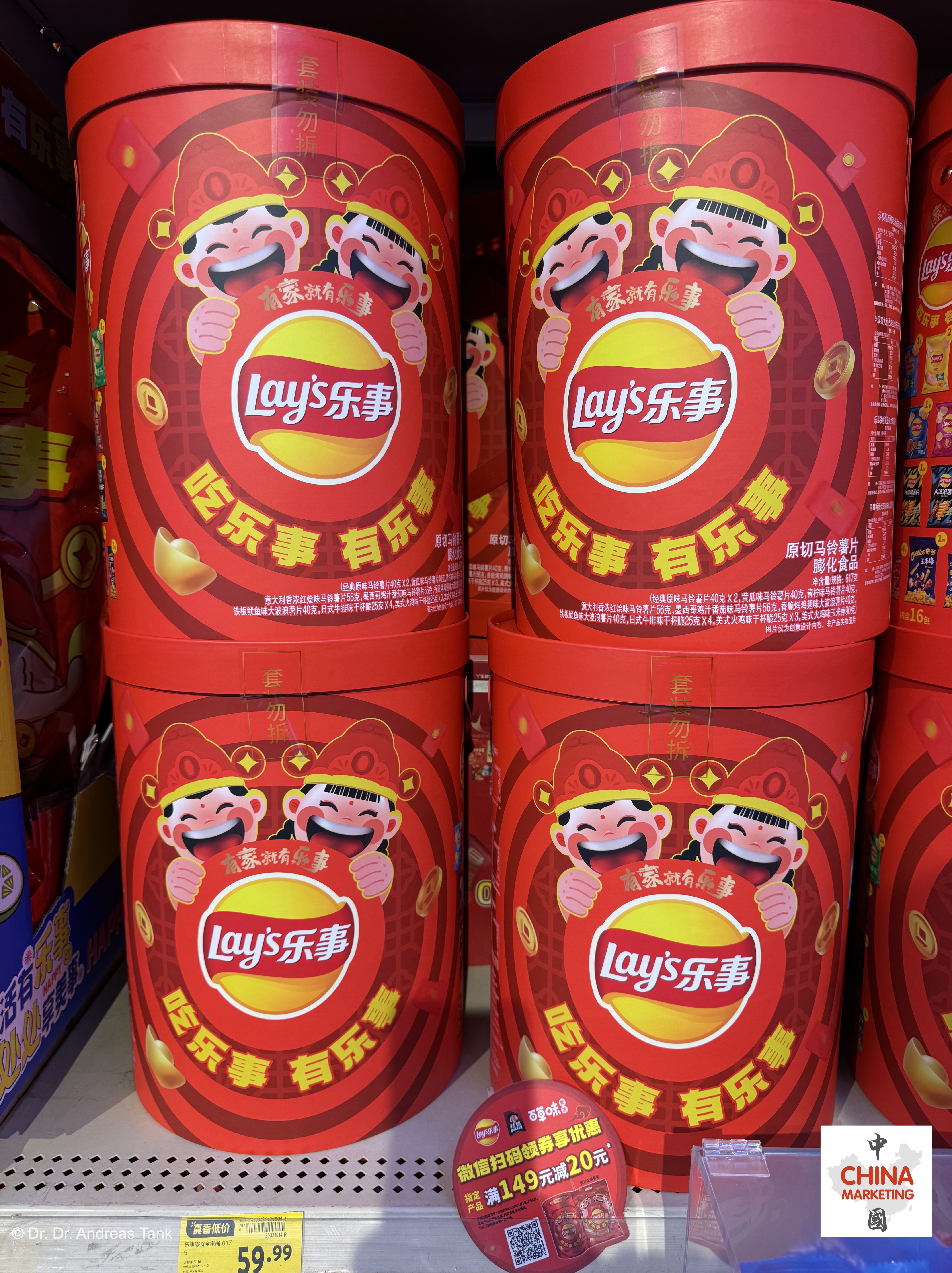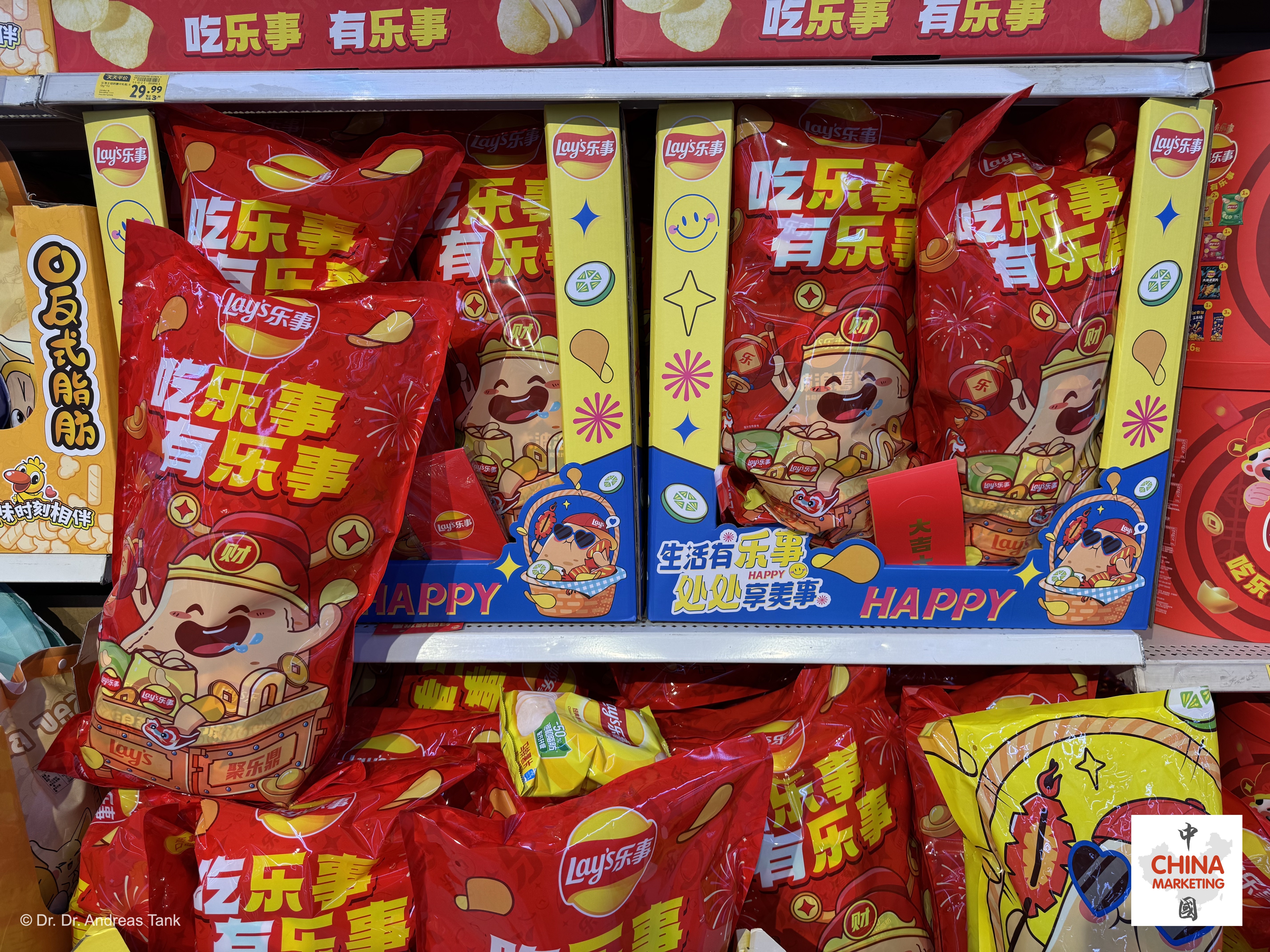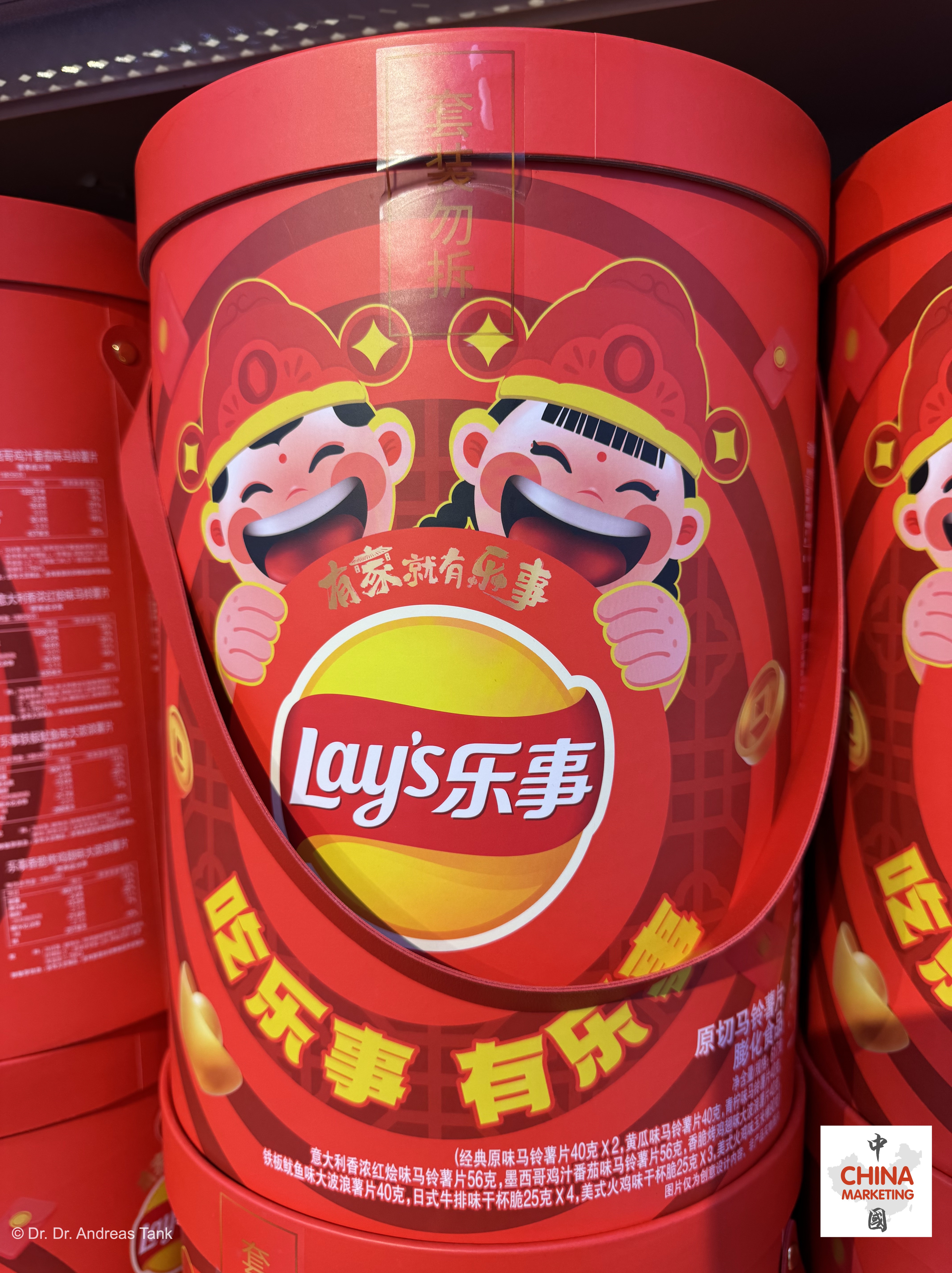 Lay’s hat dieses Jahr eines der umfangreichsten Sortimente an Frühlingsfestprodukten für seine herzhaften Chips auf den Markt gebracht: Verschiedene Packungsgrößen, Formate und sogar Funktionen: Eine Geschenkpackung kann sich in eine chinesische Laterne verwandeln. Neben glückverheißenden Designelementen sind Rot und Gold die dominierenden Farben. Der chinesische Markenname 乐事 (le shi) bedeutet „Fröhliche Dinge“. Die Botschaft: Wer Lay’s isst, wird Freude haben (吃乐事 有乐事)! Mehrfachpackungen mit verschiedenen Geschmacksrichtungen eignen sich hervorragend für Familientreffen wie das Chinesische Neujahrsfest – für jeden ist etwas dabei! at