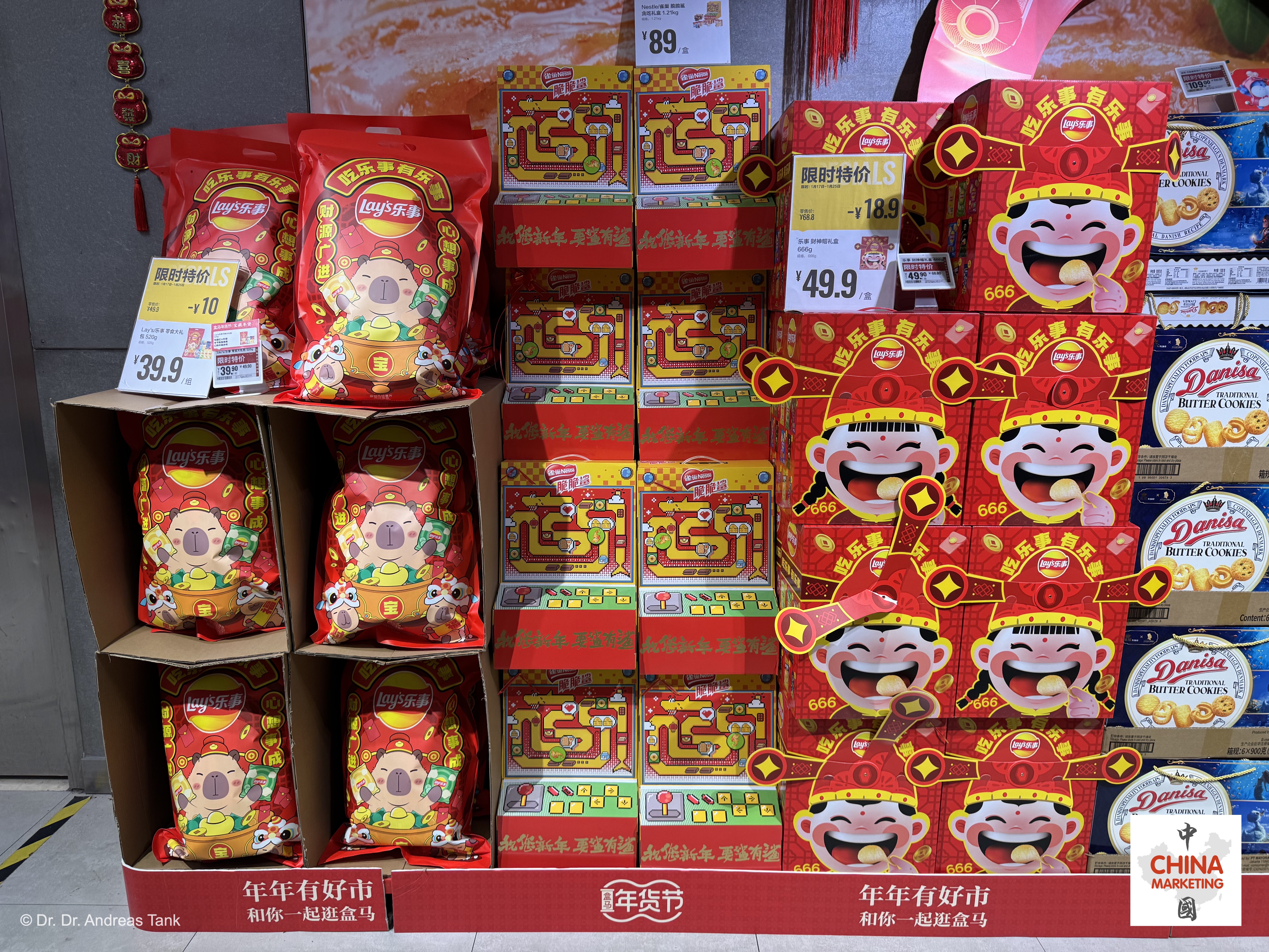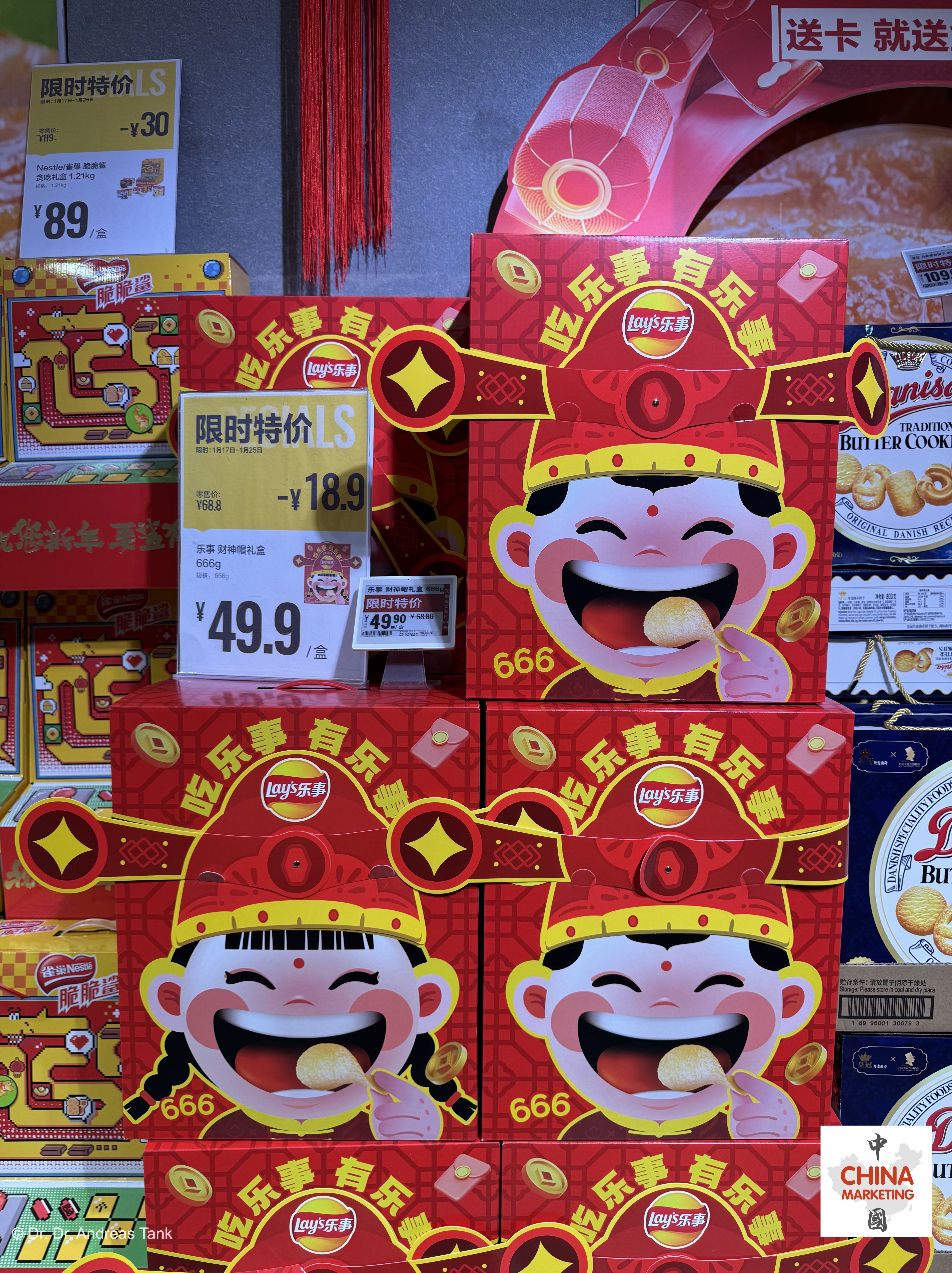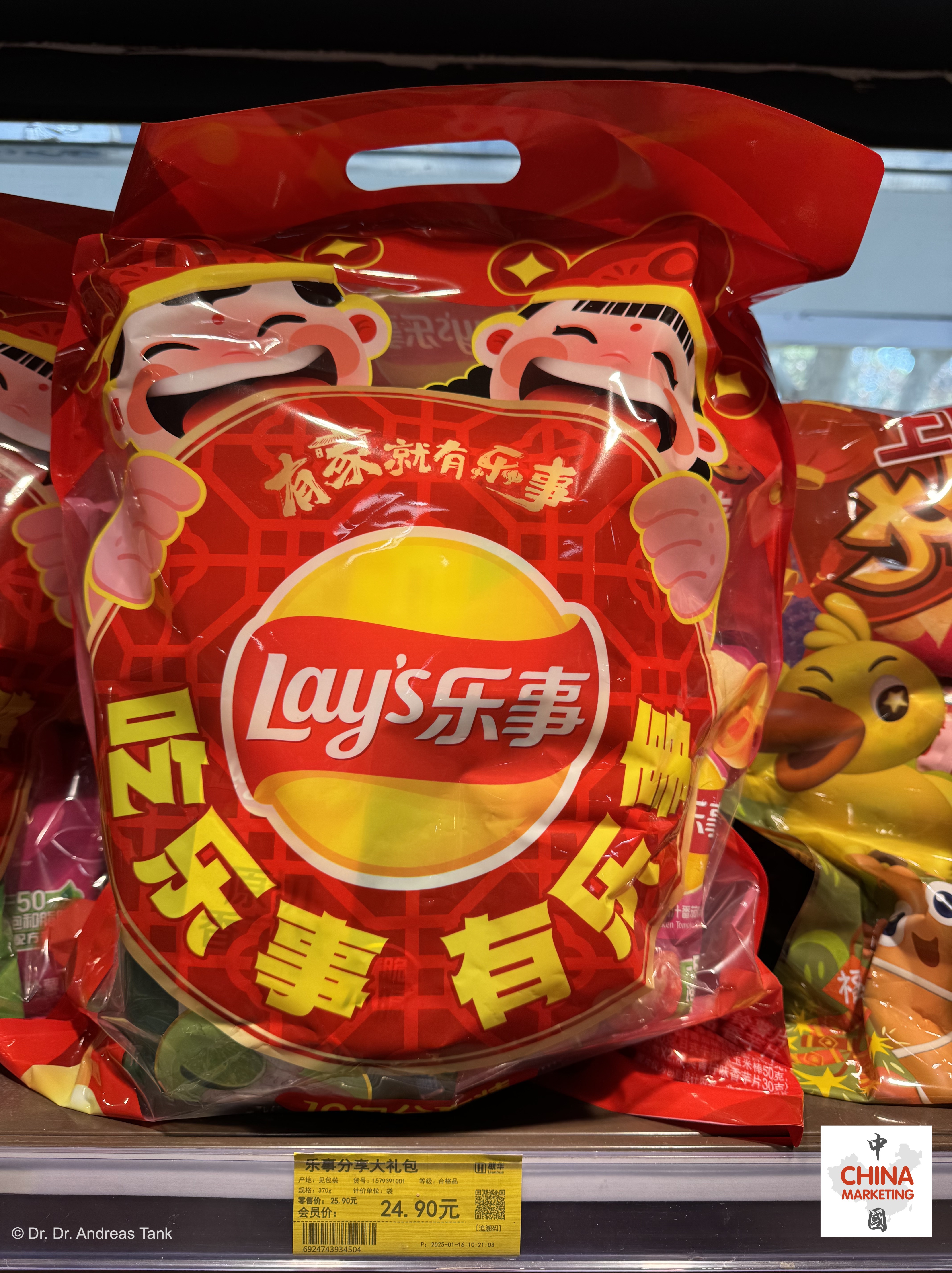 Lay’s hat dieses Jahr eines der umfangreichsten Sortimente an Frühlingsfestprodukten für seine herzhaften Chips auf den Markt gebracht: Verschiedene Packungsgrößen, Formate und sogar Funktionen: Eine Geschenkpackung kann sich in eine chinesische Laterne verwandeln. Neben glückverheißenden Designelementen sind Rot und Gold die dominierenden Farben. Der chinesische Markenname 乐事 (le shi) bedeutet „Fröhliche Dinge“. Die Botschaft: Wer Lay’s isst, wird Freude haben (吃乐事 有乐事)! Mehrfachpackungen mit verschiedenen Geschmacksrichtungen eignen sich hervorragend für Familientreffen wie das Chinesische Neujahrsfest – für jeden ist etwas dabei! at