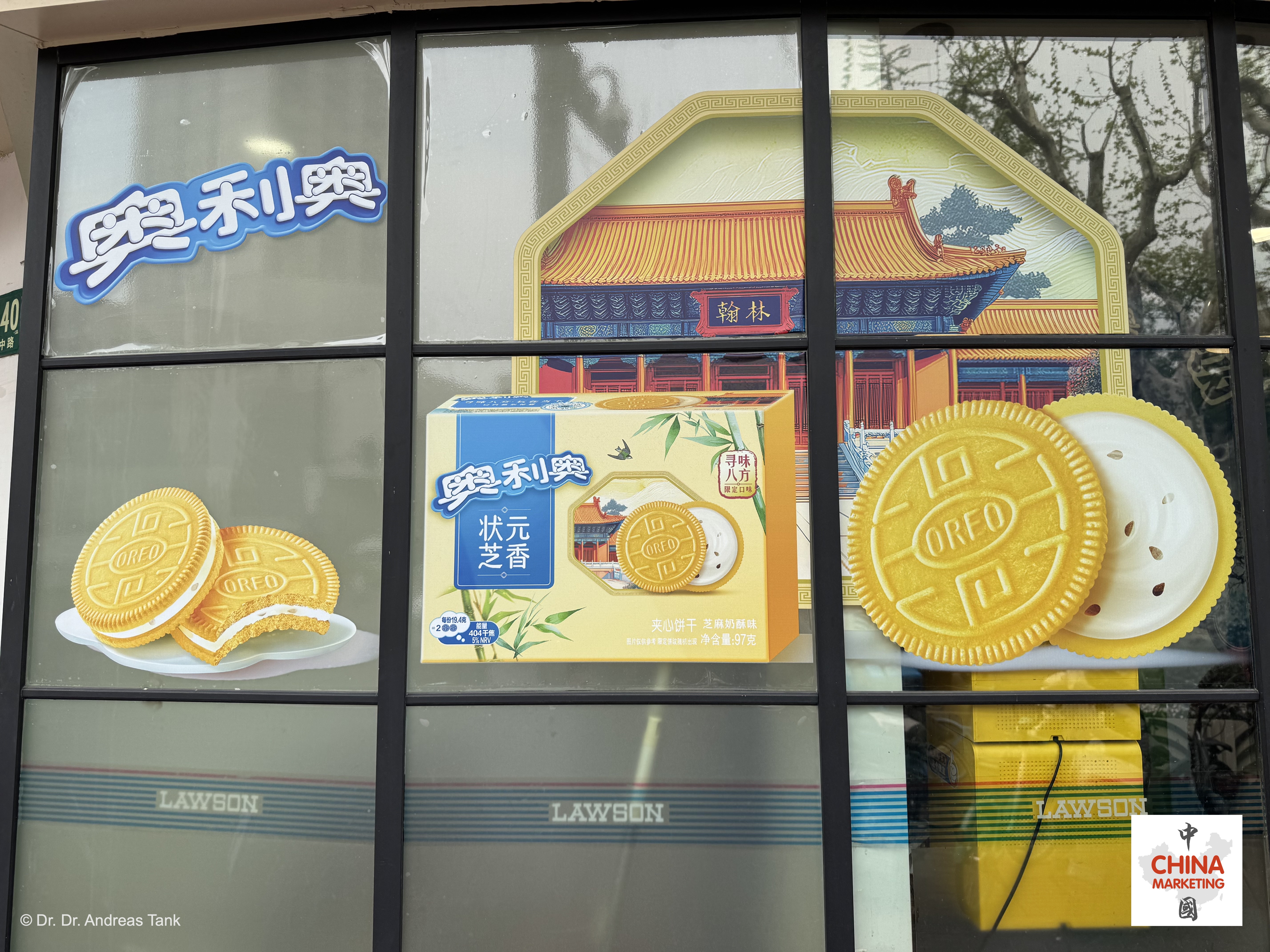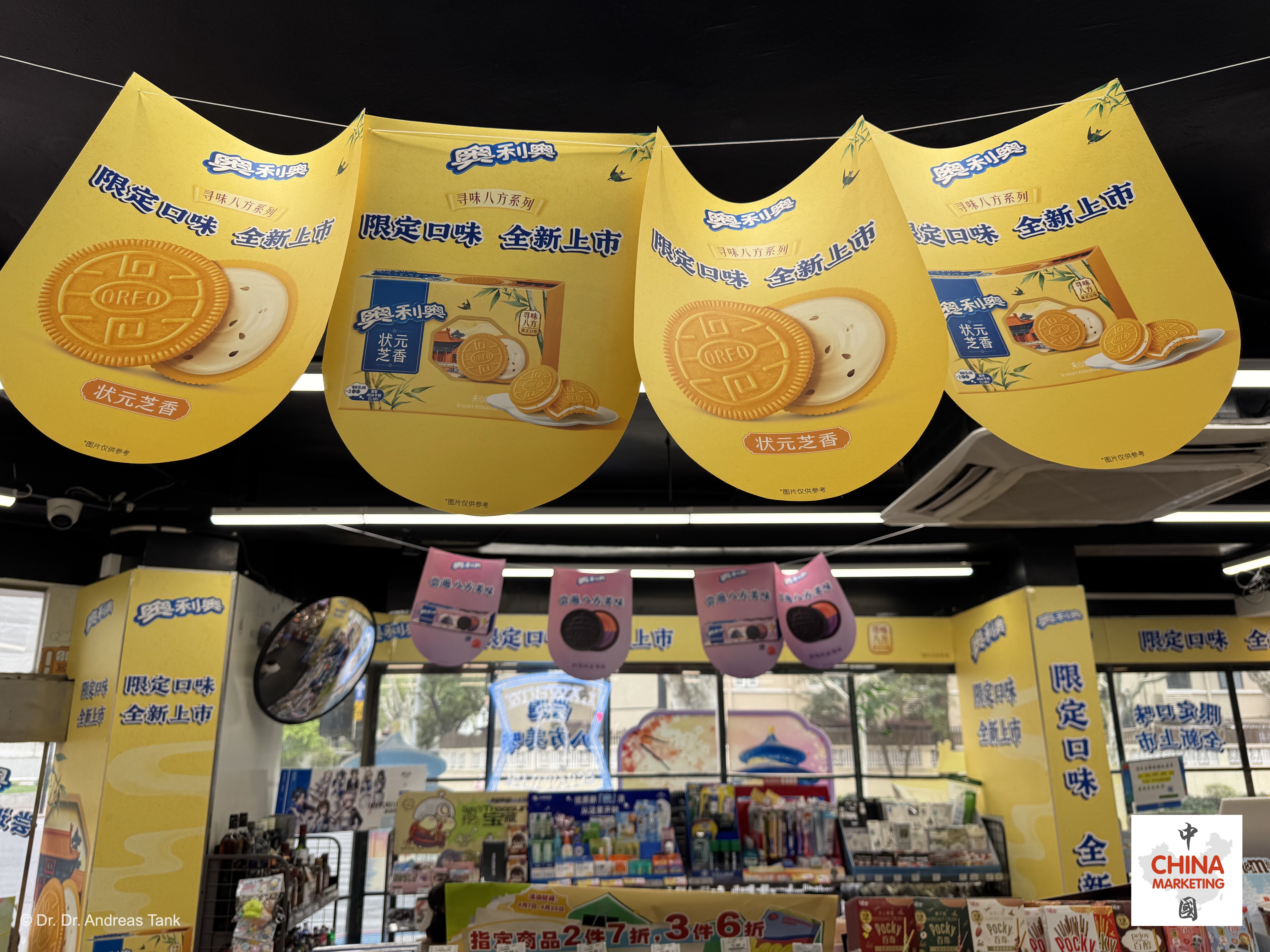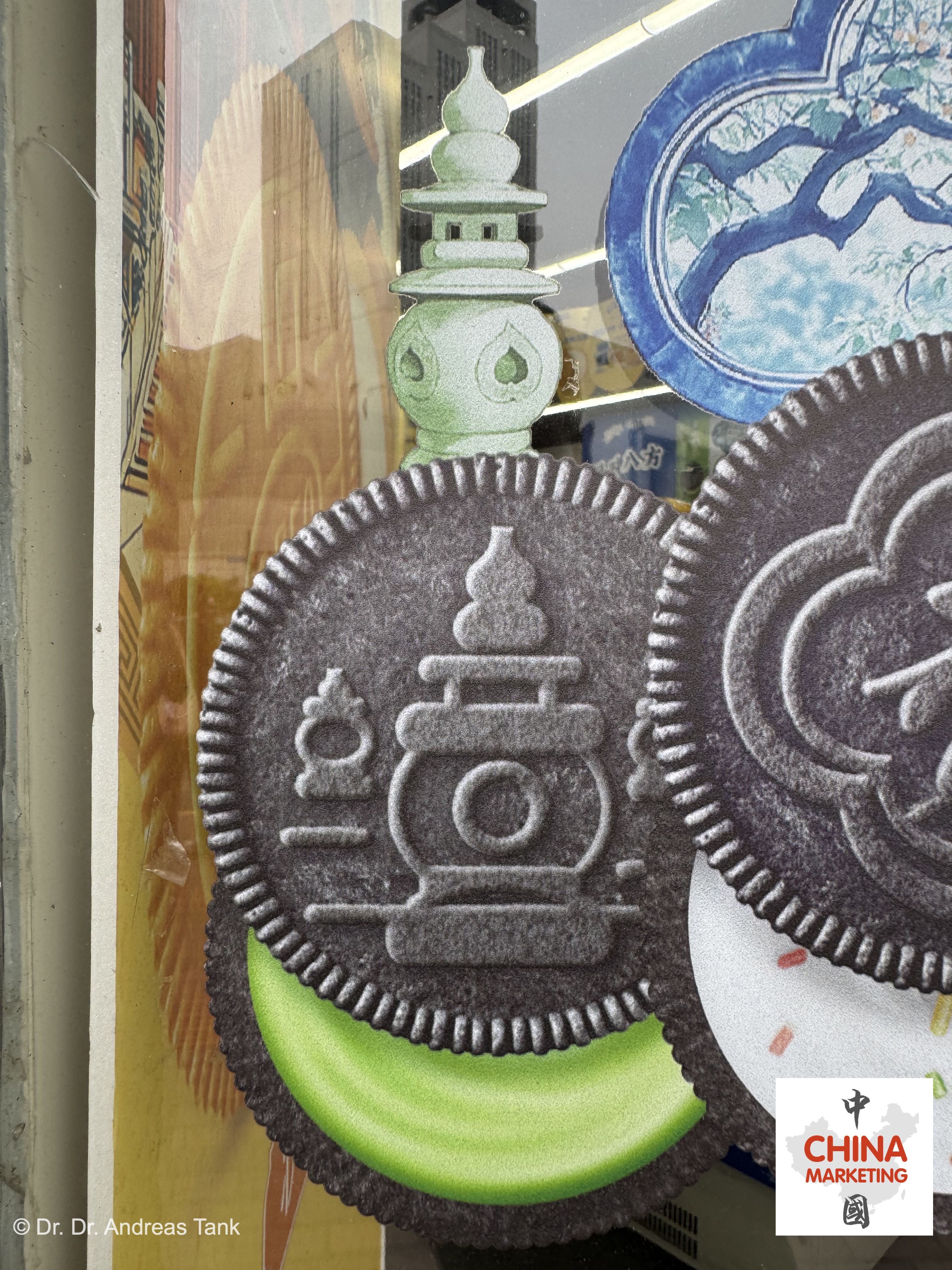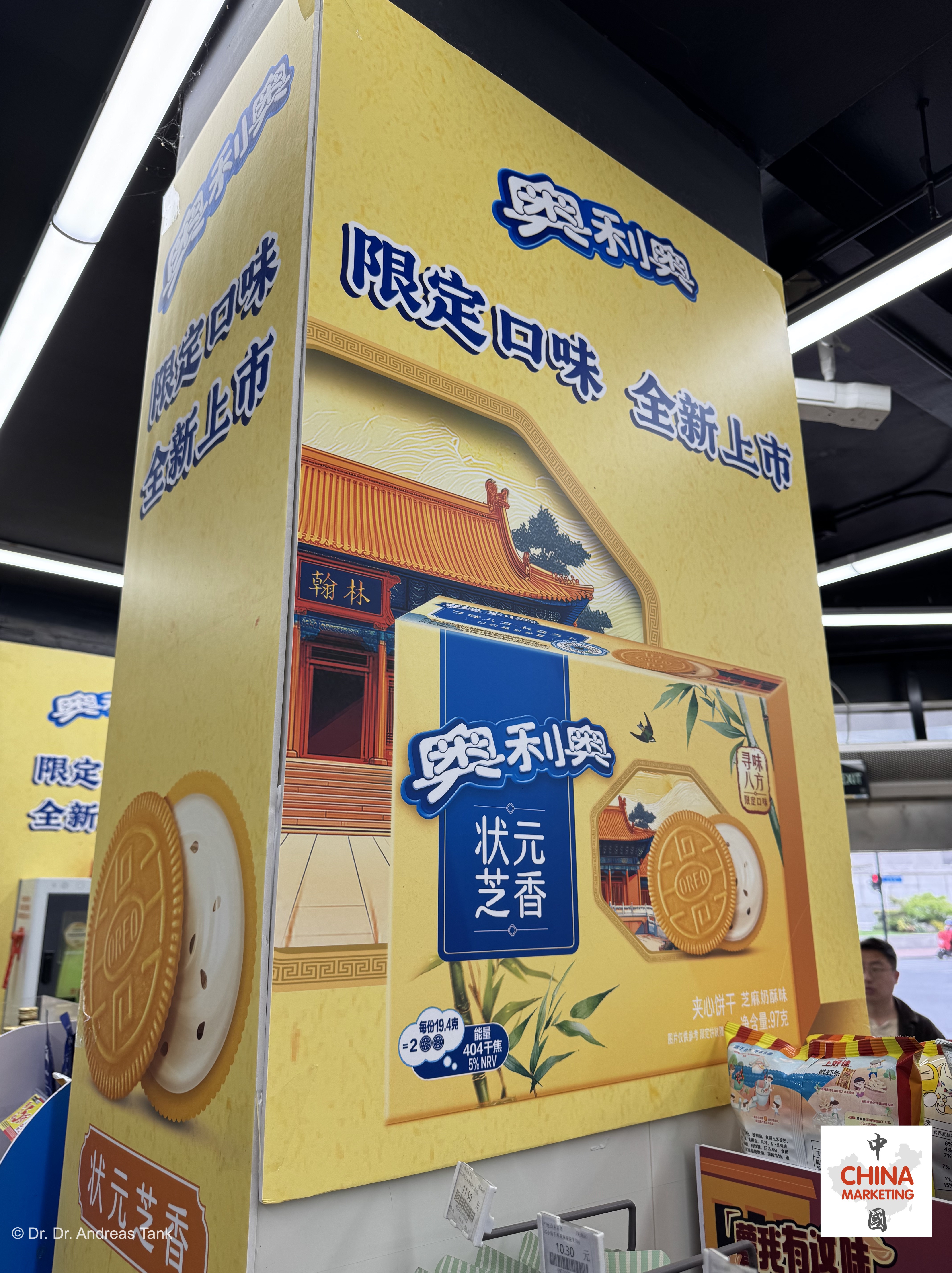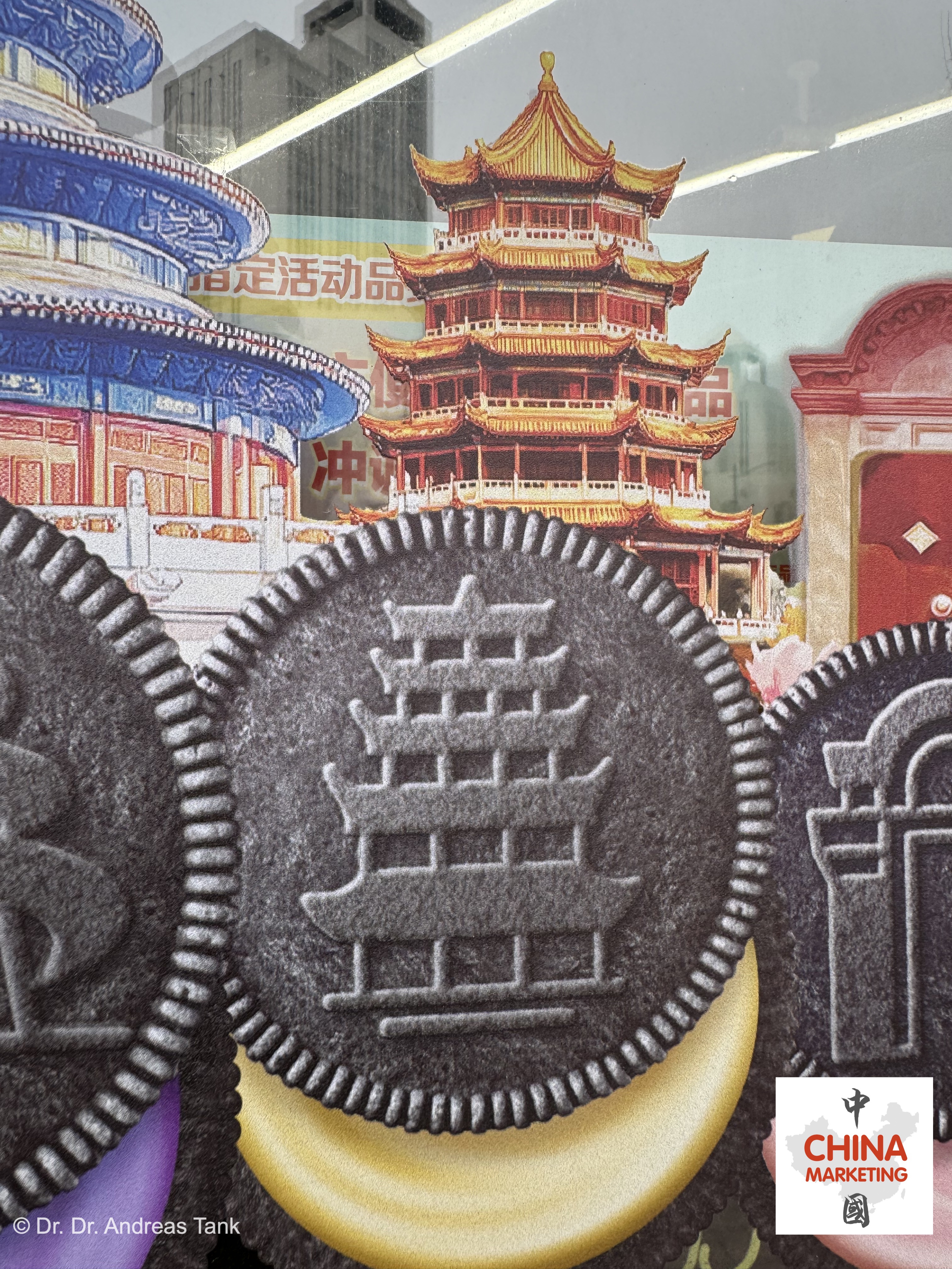 Oreo hat in China fünf limitierte Kekse mit Landschaftsmuster auf den Markt gebracht. Jedes Design ist an ikonische Orte mit starkem kulturellem Erbe angelehnt: den Himmelstempel in Peking (Himbeere-Blaubeere), die Kranichpagode in Wuhan (Pfirsich-Oolong-Tee), die berühmten Gärten in Suzhou (Geburtstagskuchen-Geschmack), eine Steinlaterne vom malerischen Westsee in Hangzhou (Matcha-Eis) und einen Eingang zu Shanghais einzigartigen Shikumen-Steintorhäusern (Pfirsich-Traube).